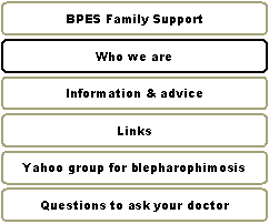 We encourage you to share your experiences, suggestions or questions with regard to treatment options or information about BPES. This exchange is beneficial as part of our on-going education process and assessment of information about blepharophimosis.